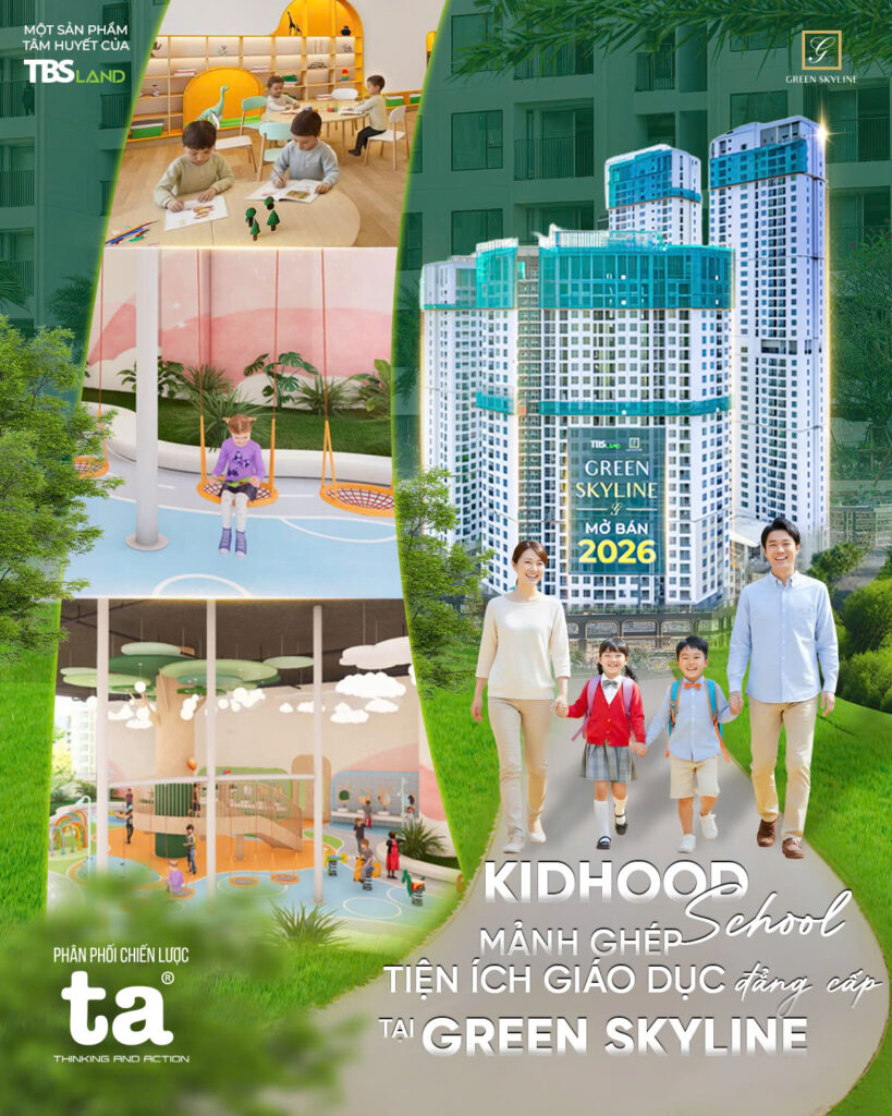 ✨ Không gian sống tại Green Skyline được kiến tạo trọn vẹn không chỉ bởi hệ tiện ích chuẩn resort, mà còn bởi môi trường giáo dục dành cho thế hệ tương lai. Sự hiện diện của trường mầm non Kidhood ngay nội khu chính là mảnh ghép hoàn thiện, mang đến sự an tâm bền vững cho các gia đình.